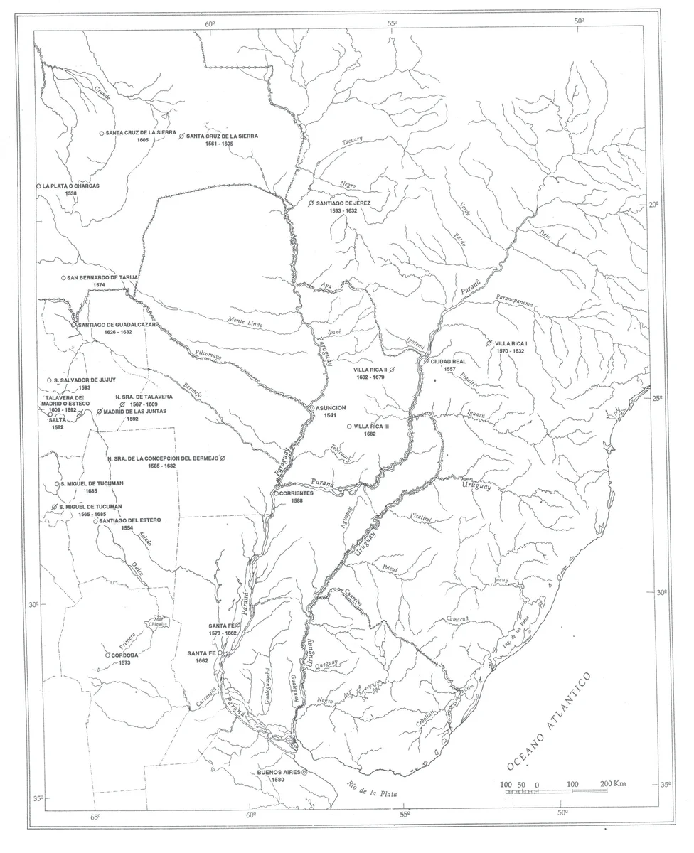 MAEDER, Ernesto J. A. & GUTIERREZ, Ramón. Atlas Territorial y Urbano de las misiones jesuíticas de guaraníes. Argentina, Paraguay y Brasil. Sevilla, Instituto Andaluz del património histórico, 2009. P. 18
